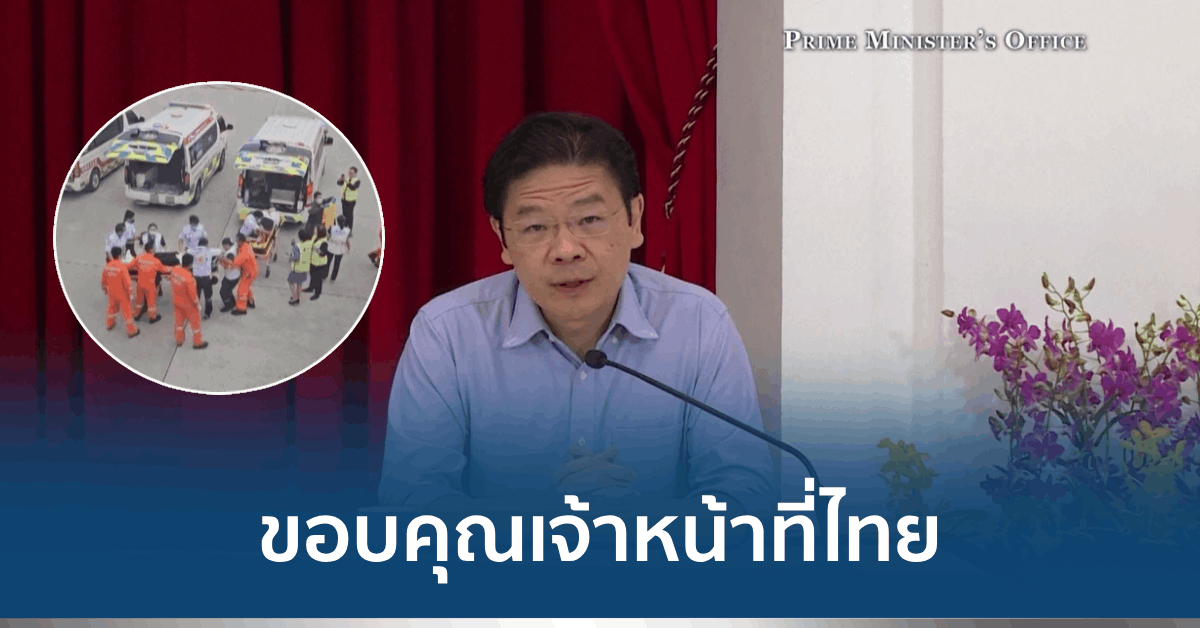 สิงคโปร์ 22 พ.ค. – นายกรัฐมนตรี ลอว์เรนซ์ หว่อง ของสิงคโปร์ แถลงขอบคุณเจ้าหน้าที่ในไทยที่ให้การช่วยเหลือดูแลผู้โดยสาร และลูกเรือ ของสายการบินสิงคโปร์ แอร์ไลน์ส ที่ตกหลุมอากาศอย่างรุนแรงจนต้องลงจอดฉุกเฉินในไทย
