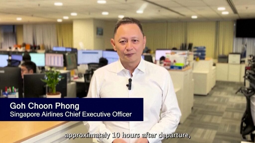 นายโกะ ชุน ฟ่ง ยังเปิดเผยรายละเอียดช่วงเวลาที่เครื่องบินตกหลุมอากาศ ด้วยว่า เที่ยวบิน เอสคิว321 เผชิญภาวะตกหลุมอากาศขั้นรุนแรง แบบปัจจุบันทันด่วน ขณะบินอยู่ระดับความสูง 37,000 ฟุต เหนือลุ่มแม่น้ำอิรวะดี ในเมียนมา และอยู่ระหว่างการบินนาน 10 ชั่วโมง หลังออกเดินทางจากสนามบินฮีทโธรว์ ในกรุงลอนดอนของอังกฤษ เพื่อมายังสิงคโปร์