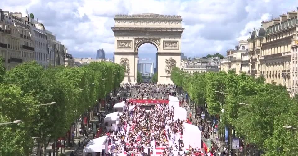 ปารีส 28 พ.ค.- ฝรั่งเศสปูพรมบนถนนฌองเซลิเซในกรุงปารีส จัดงานปิกนิกยักษ์ ลบภาพลักษณ์ความหรูหรา ให้คนธรรมดามาเที่ยวพักผ่อนได้อย่างสบายใจ