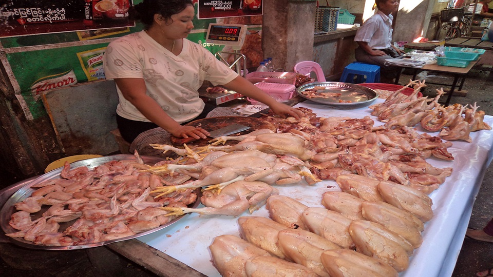 สำนักข่าวซินหัวของทางการจีนรายงานว่า จากการสำรวจราคาเป็ดไก่ในตลาดของเมียนมาพบว่า ไก่ทั้งตัว 1.6 กิโลกรัมขณะนี้มีราคาอยู่ที่ 1,700 จ๊าด (ราว 40 บาท) จากราคาปกติที่เคยมีการวางขายก่อนหน้านี้ที่ 3,200 จ๊าด (ราว 78 บาท) และร่วงลงจากราคาสูงสุดที่เคยทำได้ก่อนหน้านี้ถึงร้อยละ 50