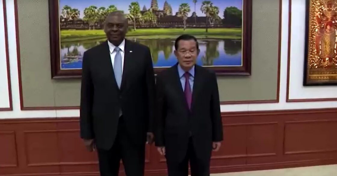 พนมเปญ 4 มิ.ย.- นายลอยด์ ออสติน รัฐมนตรีกลาโหมสหรัฐเยือนกัมพูชาเป็นเวลาสั้น ๆ ในวันนี้ โดยได้พบกับนายกรัฐมนตรีฮุน มาแนต อดีตนายกรัฐมนตรีฮุน เซน และรัฐมนตรีกลาโหมกัมพูชา