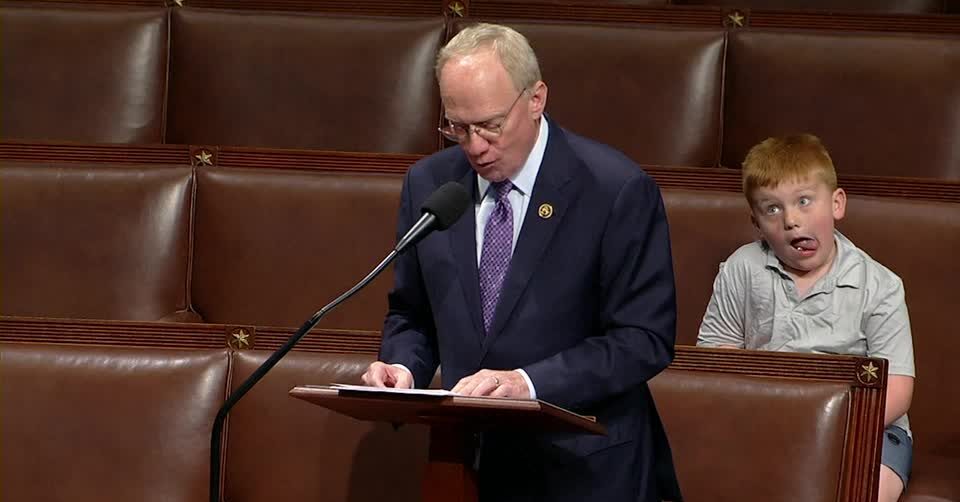 วอชิงตัน 6 มิ.ย. – ลูกชายของ สส. พรรครีพับลิกันคนหนึ่ง ทำหน้าทะเล้นใส่กล้องที่กำลังถ่ายทอด ขณะผู้เป็นพ่อกำลังแถลงต่อที่ประชุมรัฐสภาในสหรัฐฯ กลายเป็นการแย่งซีนพ่อไปโดยปริยาย