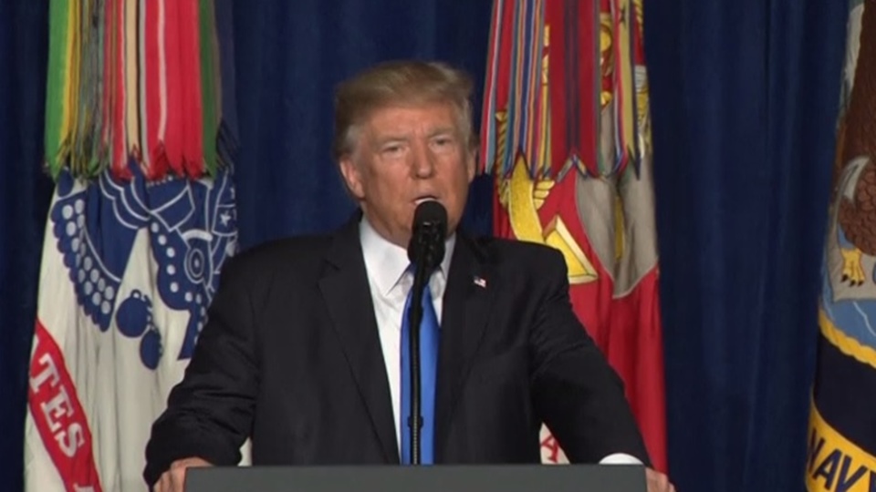 ประธานาธิบดีทรัมป์กล่าวแถลงการณ์ออกอากาศทางโทรทัศน์ช่วงไพรม์ไทม์ หรือช่วงเวลาที่มีคนดูมากที่สุดเมื่อคืนวานนี้ตามเวลาท้องถิ่นว่า ยุทธศาสตร์ใหม่มีวัตถุประสงค์เพื่อป้องกันไม่ให้อัฟกานิสถานกลายเป็นแหล่งกบดานของกองกำลังติดอาวุธอิสลาม โดยได้ขยายอำนาจทางทหารให้แก่กองทัพอเมริกันในการพุ่งเป้าโจมตีเครือข่ายกองกำลังติดอาวุธและอาชญากร เขากล่าวอีกว่า ศัตรูของสหรัฐในอัฟกานิสถานจะต้องรับรู้ว่า ไม่มีที่ซ่อนตัวที่ไหนที่สหรัฐไปไม่ถึง และทหารอเมริกันจะต่อสู้จนกว่าจะได้รับชัยชนะ
