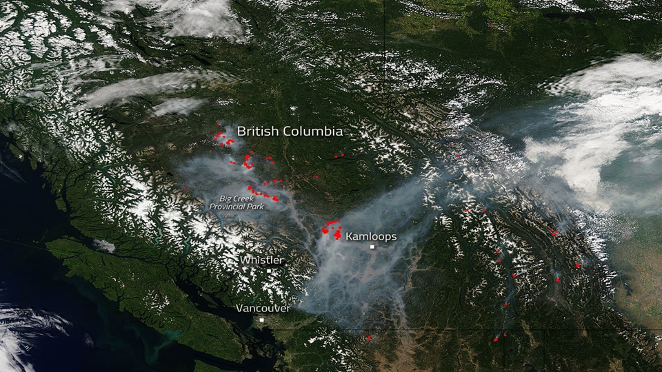 รายงานระบุว่า เกิดไฟป่าหลายจุดก่อนที่จะรวมเป็นจุดเดียวทางตะวันตกของเมืองเควสเนล โดยไฟลุกลามเผาไหม้พื้นที่เป็นบริเวณกว้างกว่าสองเท่าของพื้นที่ที่เคยได้รับความเสียหายในช่วงเกิดเหตุไฟป่าครั้งใหญ่เมื่อปี 2501 ทางการได้ประกาศสถานการณ์ฉุกเฉินในรัฐบริติชโคลัมเบียมาตั้งแต่วันที่ 7 กรกฎาคมที่ผ่านมา ขณะที่ประชาชนหลายหมื่นคนต้องอพยพออกจากพื้นที่