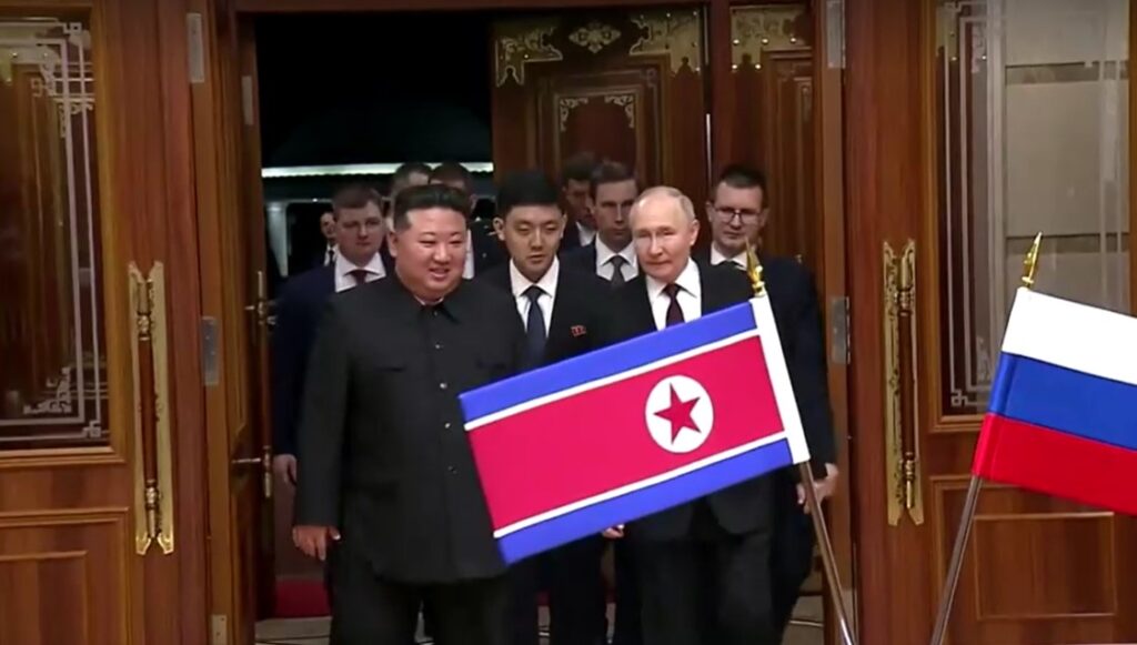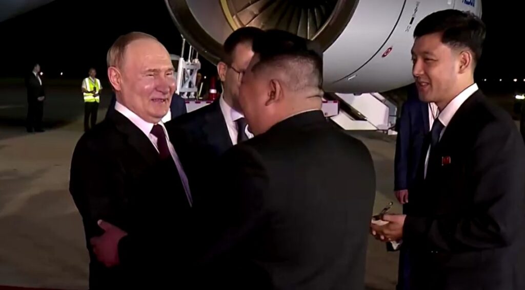 ปูตินเดินทางถึงท่าอากาศยานกรุงเปียงยางราวเวลา 03.00 น. กลางดึกคืนที่ผ่านมาตามเวลาท้องถิ่น หลังจากแวะภูมิภาคตะวันออกไกลของรัสเซียก่อนเดินทางมายังเกาหลีเหนือ โดยมี คิม จอง-อึน ผู้นำเกาหลีเหนือเดินมารอต้อนรับ ทั้งคู่ได้จับมือ สวมกอดกัน และพูดคุยกันอยู่หลายนาที คาดว่าในวันนี้ ปูตินและคิมจะพบหารือกันในหลายประเด็น และจะมีการลงนามในข้อตกลงความร่วมมือและความเป็นหุ้นส่วนระหว่างกันหลายฉบับ คาดว่าปูตินจะได้ชมการสวนสนามแสดงแสนยานุภาพของกองทัพเกาหลีเหนือที่จัตุรัสคิม อิล-ซุง ในกรุงเปียงยาง ชมการแสดงคอนเสิร์ต และเดินทางไปยังโบสถ์ของคริสตจักรออร์โธดอกซ์แห่งเดียวในเกาหลีเหนือด้วย