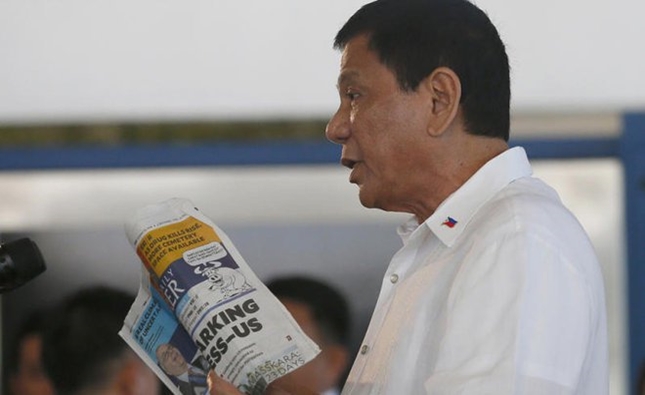 ประธานาธิบดีดูเตอร์เตแสดงความเกรี้ยวกราดขณะถือหนังสือพิมพ์ที่พาดหัวข่าวว่านายแดเนียล รัสเซล รัฐมนตรีช่วยต่างประเทศสหรัฐด้านกิจการเอเชียตะวันออกและแปซิฟิกวิจารณ์เมื่อวันก่อนว่าคำพูดเผ็ดร้อนและสงครามยาเสพติดของเขาไม่เป็นผลดีต่อธุรกิจว่า หากเป็นอย่างนั้นก็ขอให้นักธุรกิจชาวอเมริกันเก็บกระเป๋าออกไป เพราะฟิลิปปินส์สามารถอยู่ได้ นอกจากนี้ยังได้ตอบโต้ผู้วิจารณ์เขาด้วยประโยคแรง ๆ อีกหลายประโยค
