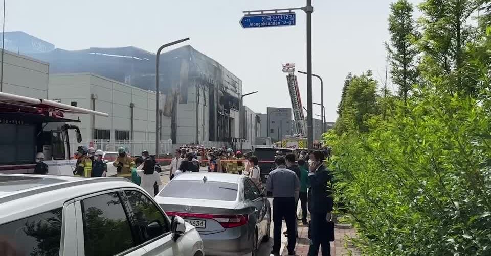 ฮวาซอง 24 มิ.ย. – เจ้าหน้าที่ดับเพลิง กล่าวว่า เกิดเพลิงไหม้ที่โรงงานผลิตแบตเตอรี่ลิเทียม ในเกาหลีใต้ในวันนี้ ทำให้มีผู้เสียชีวิต 22 ราย ส่วนใหญ่เป็นคนจีน