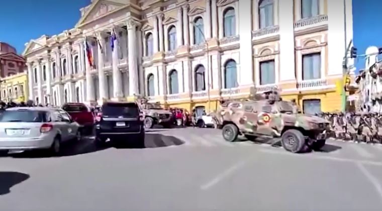 นายพลฮวน โฮเซ ซูนิกา ที่เพิ่งถูกริบอำนาจการบังคับบัญชาเมื่อไม่นานมานี้ ได้ยกกำลังพลไปยังจัตุรัสปลาซามูริญโญ ในกรุงลาปาสในเช้าวันเดียวกัน ซึ่งเป็นที่ตั้งของทำเนียบประธานาธิบดีและรัฐสภา จากนั้นยานหุ้มเกราะคันหนึ่งได้พังประตูเข้าไปในทำเนียบพร้อมกับกำลังพล แต่การยึดอำนาจไม่สำเร็จ ประธานาธิบดีลุยส์ อาร์เซแถลงจากทำเนียบประธานาธิบดี ประณามความพยายามก่อรัฐประหาร และขอให้ประชาคมโลกให้การสนับสนุน