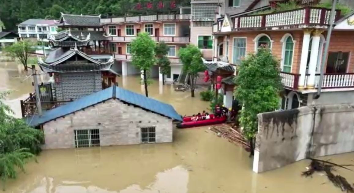 กุ้ยโจว 30 มิ.ย.- ฝนตกหนักตั้งแต่วันศุกร์จนถึงวันเสาร์ เป็นเหตุให้เกิดน้ำท่วมในมณฑลกุ้ยโจว ทางตะวันตกเฉียงใต้ของจีน บ้านเรือนและถนนหนทางจมน้ำ ประชาชนติดค้างตามสถานที่ต่าง ๆ