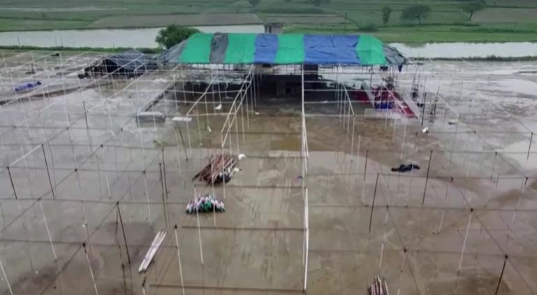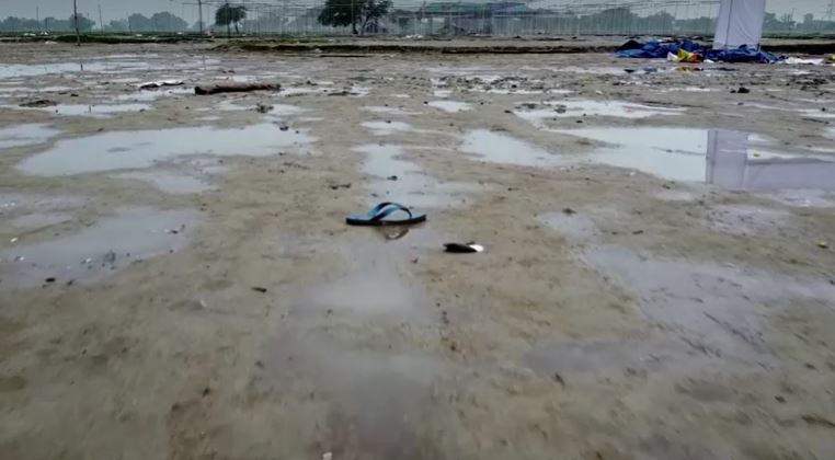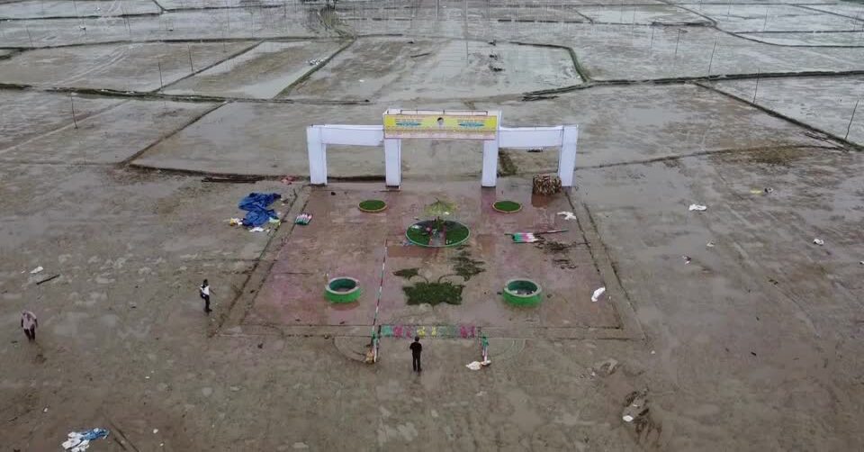 เดลี 3 ก.ค.- ภาพถ่ายมุมสูงจากโดรนเห็นรอยเท้าผู้คนและสิ่งของถูกทิ้งบนพื้นที่เป็นดินโคลน ในสถานที่ที่เกิดเหตุเบียดกันจนขาดอากาศหายใจเสียชีวิตในรัฐอุตตระประเทศ ทางตอนเหนือของอินเดียที่มีผู้เสียชีวิตเพิ่มเป็น 121 คนแล้ว