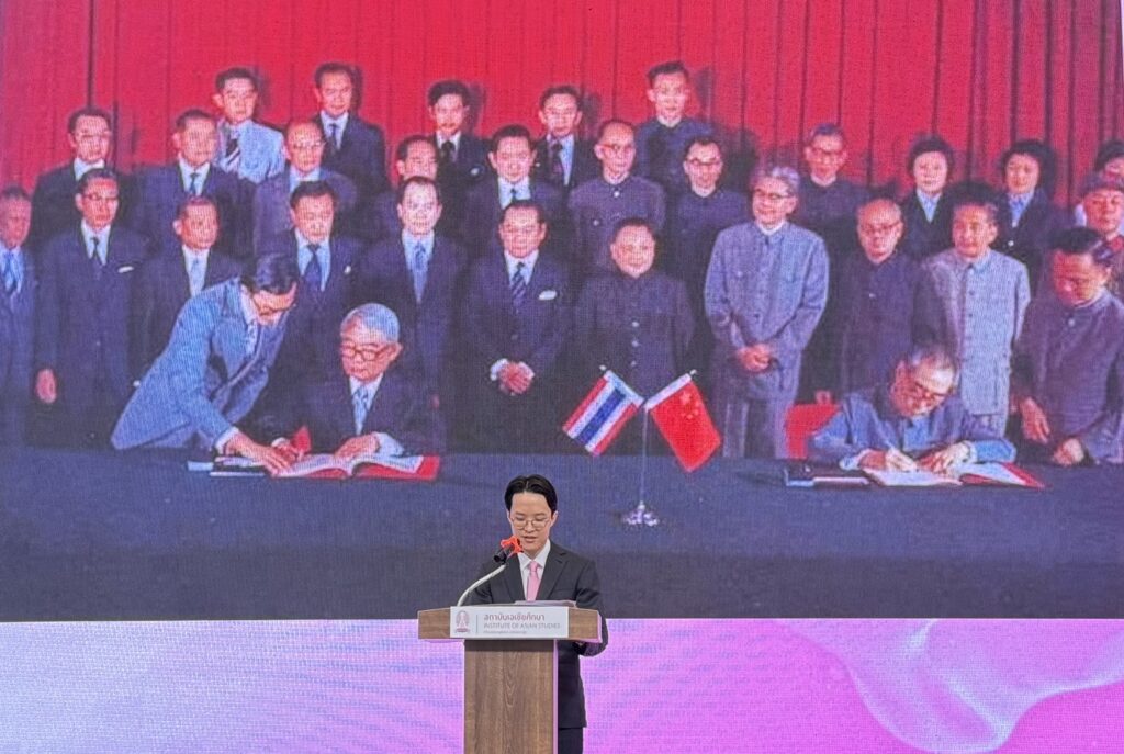 วันนี้ ศูนย์จีนศึกษา สถาบันเอเชียศึกษา จุฬาลงกรณ์มหาวิทยาลัย ได้ร่วมกับสถานเอกอัครราชทูตจีนประจำประเทศไทย จัดงานสัมมนาทางวิชาการเรื่อง “Building a Thailand-China Community with a Shared Future” โดยมีวัตถุประสงค์เพื่อนำเสนอและเผยแพร่ผลงานวิจัยเรื่อง “Building a Thailand-China Community with a Shared Future and Its Implications for Thailand” โดยมี ฯพณฯ หาน จื้อเฉียง เอกอัครราชทูตสาธารณรัฐประชาชนจีนประจำประเทศไทย และศาสตราจารย์ (พิเศษ) ดร.สุรเกียรติ์ เสถียรไทย นายกสภาจุฬาลงกรณ์มหาวิทยาลัย และอดีตรองนายกรัฐมนตรีและรัฐมนตรีว่าการกระทรวงการต่างประเทศ ร่วมเป็นองค์ปาฐกถา