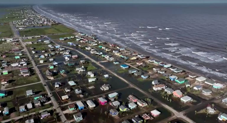 เท็กซัส 9 ก.ค.- ภาพถ่ายทางอากาศด้วยโดรนเห็นบ้านจำนวนมากถูกล้อมรอบด้วยน้ำท่วม และเห็นบ้านหลังหนึ่งตั้งอยู่โดยไม่มีหลังคาและผนังบ้านหลายด้านปลิวหายไป หลังจากเฮอริเคนเบริล (Beryl) พัดผ่านเมืองเซิร์ฟไซด์บีช รัฐเท็กซัสของสหรัฐ