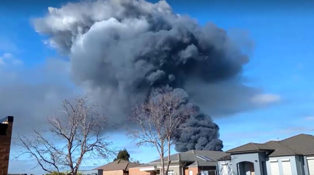 เมลเบิร์น 10 ก.ค. – ท้องฟ้าเมืองเมลเบิร์นของออสเตรเลีย ถูกปกคลุมไปด้วยกลุ่มควันหนาและเปลวไฟ ในวันนี้ หลังจากเกิดไฟไหม้ขนาดใหญ่ที่โรงงานสารเคมี