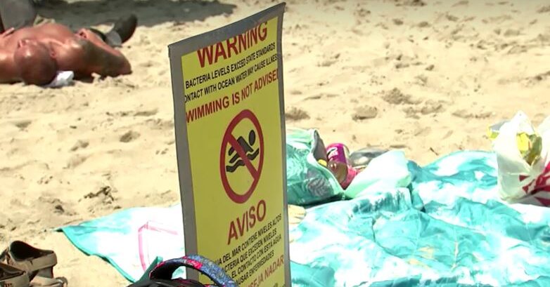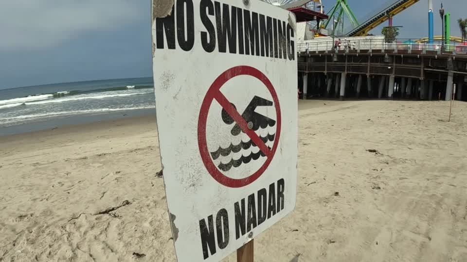 ทางการท้องถิ่นได้ปักป้ายเตือน “ห้ามเล่นน้ำ” ที่ชายหาดยอดนิยมหลายแห่งของเทศมณฑลลอสแอนเจลิส รัฐแคลิฟอร์เนียของสหรัฐ รวมถึงชายหาดชื่อดังอย่างมาลิบู และซานตาโมนิกา ในขณะที่สภาพอากาศทางตอนใต้ของรัฐแคลิฟอร์เนียกำลังร้อนจัดเพราะอุณหภูมิสูง นักท่องเที่ยวที่เดินทางมาจากรัฐอื่นเผยว่า ไม่ได้สังเกตเห็นป้ายเตือน และให้ลูก ๆ ลงไปเล่นน้ำตามปกติ ขณะที่นักท่องเที่ยวในพื้นที่กล่าวว่า เล่นน้ำที่ชายหาดซานตาโมนิกามาทั้งชีวิต ไม่น่าจะมีปัญหาอะไร