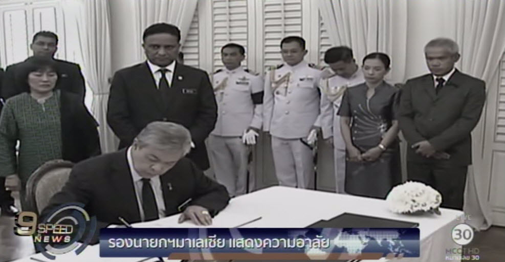 มาเลเซีย 25 ต.ค. – ดร.อาเหม็ด ซาฮิด ฮามิดี รองนายกรัฐมนตรีมาเลเซีย เดินทางไปทำเนียบอัครราชทูตไทยในกรุงกัวลาลัมเปอร์ มาเลเซีย เพื่อถวายความเคารพและลงนามแสดงความอาลัยพระบาทสมเด็จพระปรมินทรมหาภูมิพลอดุลยเดช