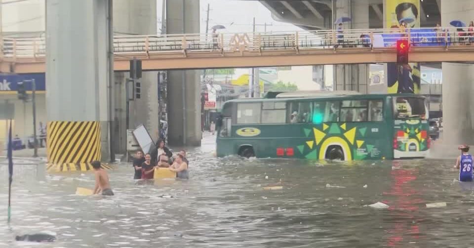 ท้องถนนในกรุงมะนิลาถูกน้ำท่วม ผู้คนเดินลุยน้ำที่ท่วมสูงถึงระดับประตูรถโดยสาร ทางการต้องสั่งปิดเรียนในสถาบันการศึกษาทุกระดับในวันนี้ เช่นเดียวกับตลาดหุลักทรัพย์และหน่วยงานส่วนใหญ่ของรัฐ ทั้งในกรุงมะนิลาและภูมิภาคโดยรอบ ซึ่งประกอบด้วยเมืองต่าง ๆ 16 แห่ง ครอบคลุมประชากรอย่างน้อย 13 ล้านคน เนื่องจากเสี่ยงอันตรายจากพายุโซนร้อน.-816(814).-สำนักข่าวไทย