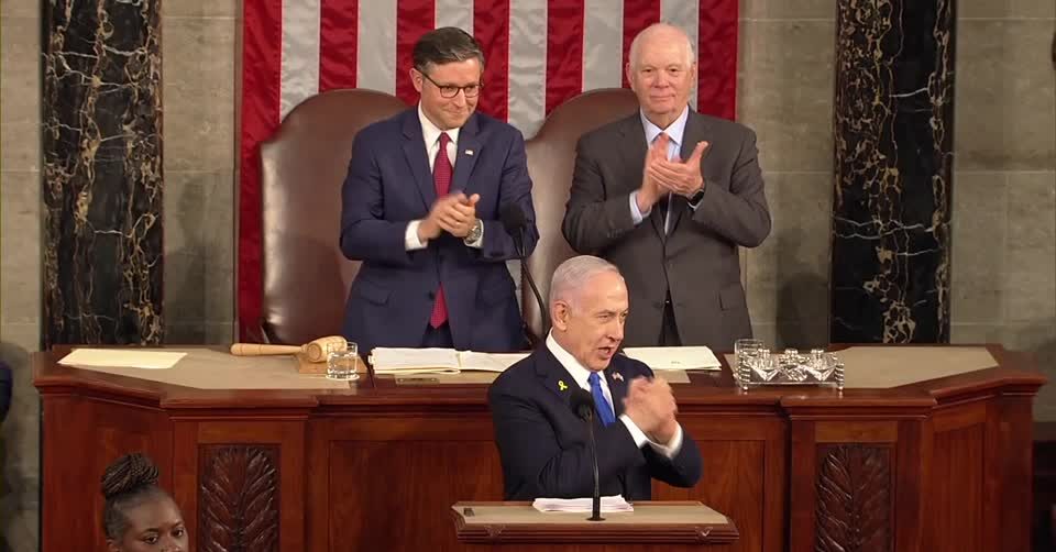 นายเนทันยาฮู ผู้นำอิสราเอลที่ครองอำนาจมายาวนาน ได้รับการปรบมือต้อนรับเมื่อเดินทางมาถึงอาคารรัฐสภาเมื่อวานนี้ เพื่อปราศรัยต่อที่ประชุมร่วมของวุฒิสภาและสภาผู้แทนราษฎร ในกรุงวอชิงตัน นายเนทันยาฮู กล่าวว่า อเมริกาและอิสราเอลต้องยืนหยัดร่วมกัน และบอกว่าศัตรูของอิสราเอลก็คือศัตรูของอเมริกาด้วย เพื่อขอเสียงสนับสนุนสำหรับการทำสงครามในกาซา พร้อมกับโจมตีอิหร่านและผู้ที่วิพากษ์วิจารณ์อิหร่าน