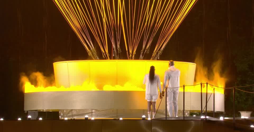 ไฮไลต์สำคัญของการจุดคบเพลิง เริ่มต้นจากผู้ถือคบเพลิงในหน้ากาก ส่งคบเพลิงให้ ซีเนดีน ซีดาน ตำนานเพลย์เมคเกอร์ ฟุตบอลทีมชาติฝรั่งเศส ก่อนส่งต่อให้ ราฟาเอล นาดาล นักเทนนิสชาวสเปน ที่คว้าแชมป์เฟรนซ์ โอเพ่น 16 สมัย หลังจากนั้นคบเพลิงจะผ่านมือนักกีฬาทั้งในอดีตและปัจจุบัน อย่าง เซเรนา วิลเลียมส์ ยอดนักเทนนิสหญิงอเมริกัน และ อเมลี โมเรสโม แชมป์เทนนิสวิมเบิลดันและออสเตรเลียน โอเพ่น ชาวฝรั่งเศส นาเดีย โคมาเนชี สุดยอดนักยิมนาสติกจากโรมาเนีย คาร์ล ลูอิส อดีตนักวิ่งลมกรดชื่อดังชาวอเมริกัน และ โทนี่ ปาร์คเกอร์ ตำนานนักบาสเกตบอลทีมชาติฝรั่งเศส และนำไปสู่การจุดคบเพลิงที่ “บอลลูนลอยฟ้า” โดย 2 นักกีฬาฝรั่งเศสอย่าง เท็ดดี้ ริเนอร์ แชมป์โลกยูโด 10 เหรียญทอง และ 3 เหรียญทองโอลิมปิก และ มารี-โชเซ เปเรช เจ้าของ 3 เหรียญทอง กรีฑาโอลิมปิกวิ่ง 200 เมตร และ 400 เมตร ของฝรั่งเศส เพื่อประกาศว่ากีฬาโอลิมปิก 2024 ที่กรุงปารีส ได้เปิดฉากอย่างเป็นทางการแล้ว บอลลูนสูง 30 เมตร พร้อมด้วยวงแหวนเส้นผ่าศูนย์กลาง 7 เมตร ที่ลุกโชนด้วยไฟโอลิมปิก จะลอยอยู่บนฟ้าระหว่างเวลาพระอาทิตย์ตกจนถึงเวลา 2.00 น. ทุกๆ วัน