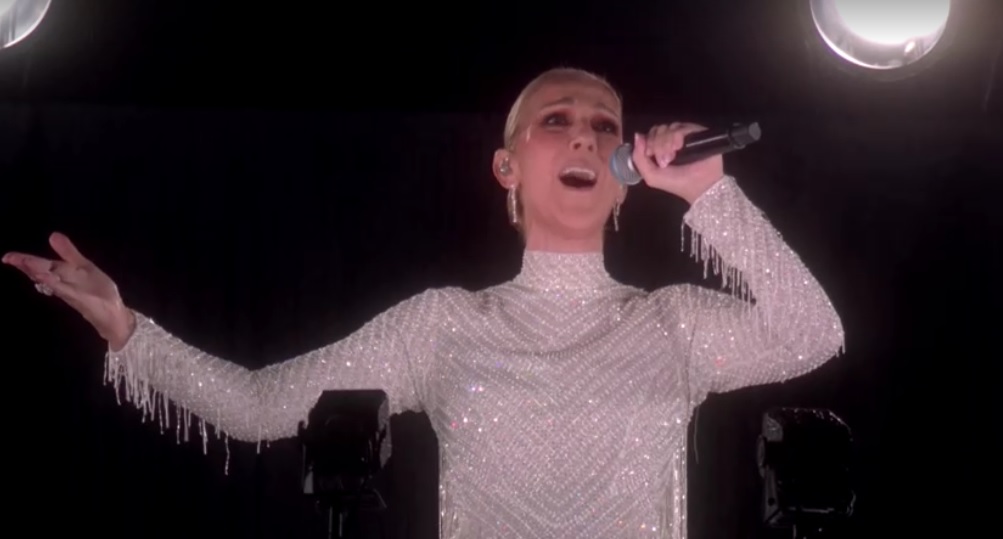 การแสดงส่งท้ายพิธีเปิดเป็นของเซลีน ดิออน นักร้องชื่อดัง เจ้าของเพลง “มาย ฮาร์ท วิล โก ออน” (My Heart Will Go On) จากภาพยนตร์ “ไททานิค” ได้ร้องเพลง “ฮัม ทู เลิฟ” (Hymn to Love) บนหอไอเฟลด้วย ซึ่งเป็นการแสดงต่อสาธารณชนเป็นครั้งแรกในรอบหลายปี หลังจากต้องเข้ารับการรักษาอาการป่วย ซึ่งเธอได้รับเสียงเชียร์ให้กำลังใจจากแฟนเพลงเป็นจำนวนมาก