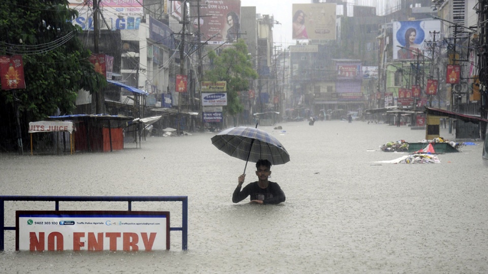 มรสุมเข้าทำให้ฝนตกหนักต่อเนื่องหลายวันในนครมุมไบที่มีประชากรกว่า 20 ล้านคน ส่งผลให้บริการรถไฟท้องถิ่นสายหลักต้องหยุดชะงัก ผู้โดยสารต้องเดินฝ่าระดับน้ำท่วมสูงเท่าเอว ตำรวจท้องถิ่นรายงานว่า บ้านสองหลังพังทลายชานนครมุมไบเมื่อค่ำวันอังคาร ทำให้ชาวอินเดียวัย 40 ปี และเด็ก 2 คนเสียชีวิต สำนักข่าวเพรสทรัสต์ออฟอินเดียรายงานว่า เฮลิคอปเตอร์กองทัพเรือรอประจำการพร้อมด้วยหน่วยกู้ภัยและนักประดาน้ำตามที่ได้รับมอบหมายให้เข้าช่วยเหลือในพื้นที่ประสบภัย บางคนต้องละทิ้งรถยนต์ไว้และเดินฝ่าน้ำท่วมกลับบ้าน นอกจากนี้ยังมีอีกหลายคนที่ตกค้างอยู่ตามสถานีรถไฟเพื่อรอความช่วยเหลือให้พากลับบ้าน ท่ามกลางประกาศเตือนว่าจะมีฝนตกหนักลงมาอีกในวันนี้ อุทกภัยทำให้มีผู้เสียชีวิตกว่า 1,000 คนในอินเดีย เนปาล และบังกลาเทศช่วงสัปดาห์ที่ผ่านๆมา และทำให้ต้องอพยพอีกหลายล้านคนออกจากบ้านเรือนจากฝนมรสุมที่รุนแรงที่สุดในรอบสองสามปีที่ผ่านมา .- สำนักข่าวไทย