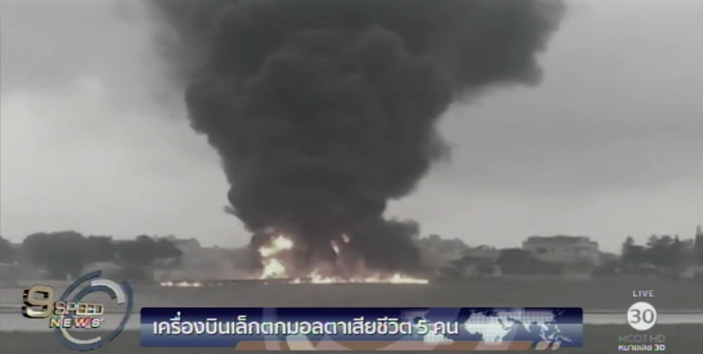เครื่องบินเล็กแบบเมโทรไลเนอร์ขนาด 2 เครื่องยนต์ ประสบอุบัติเหตุตก ไม่นานหลังเดินทางจากสนามบินในกรุงวัลเลตตา ประเทศมอลตา ซึ่งเป็นประเทศเกาะในทะเลแคริบเบียน ช่วงเช้าวันนี้ตามเวลาท้องถิ่น ไปยังเมืองมิสราตา ประเทศลิเบีย ส่งผลให้นักบินและผู้โดยสารบนเครื่อง 5 คนเสียชีวิต เครื่องบินเล็กลำดังกล่าว เป็นเครื่องบินลาดตระเวนของกระทรวงกลาโหมฝรั่งเศส ขณะที่รัฐมนตรีกลาโหมฝรั่งเศสยืนยัน ผู้เสียชีวิต 3 ราย เป็นเจ้าหน้าที่กระทรวงกลาโหม ส่วนอีก 2 ราย เป็นพนักงานอัตราจ้าง ขณะนี้เจ้าหน้าที่กู้ภัยตรวจสอบที่เกิดเหตุเพื่อรวบรวมหลักฐาน และหาสาเหตุของเครื่องบินตก. -สำนักข่าวไทย