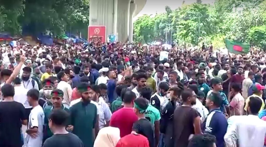 ชาวบังกลาเทศจำนวนมากออกมารวมตัวประท้วงทั่วประเทศเรียกร้องให้นายกรัฐมนตรีฮาซีนาลาออกจากตำแหน่ง มีผู้เสียชีวิตในวันอาทิตย์วันเดียว 91 คน บาดเจ็บอีกหลายร้อยคน จากการปะทะกันของผู้ประท้วง ตำรวจ และนักเคลื่อนไหวของพรรคสันนิบาตอวามีของนางฮาซีนา ทั้งในกรุงธากาและอีกหลายพื้นที่ของประเทศ รวมถึงเหตุผู้ประท้วงบุกโจมตีสถานีตำรวจ และทำร้ายเจ้าหน้าที่ตำรวจเสียชีวิต 13 นาย