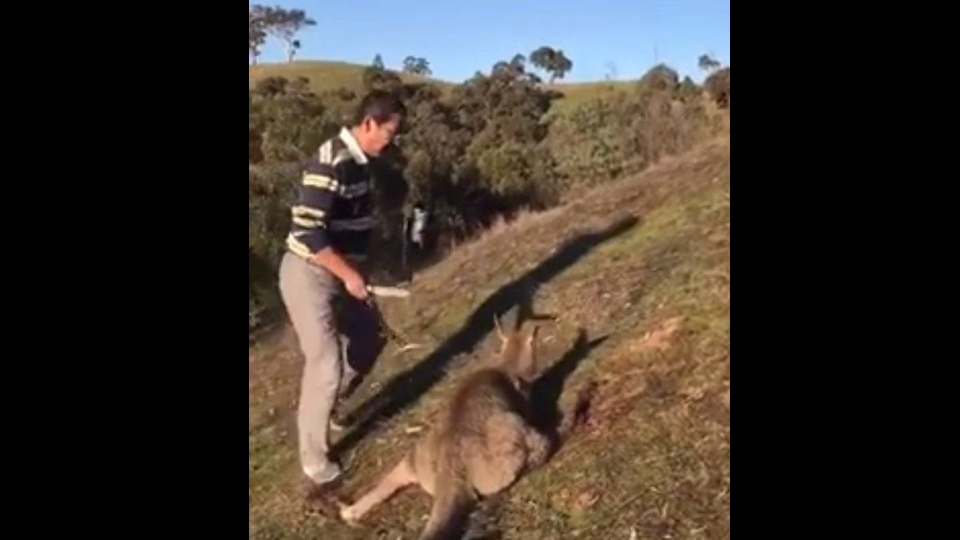 คลิปที่โพสต์ในสื่อสังคมออนไลน์เห็นชายคนหนึ่งเดินเข้าหาจิงโจ้ที่บาดเจ็บ พูดภาษาจีนกลางกับจิงโจ้ ก่อนคว้าหางมันแล้วใช้มีดขนาดใหญ่เชือดคอซ้ำ ๆ อย่างทารุณ โดยได้ยินเสียงหัวเราะของผู้ถ่ายคลิปด้วย.- สำนักข่าวไทย