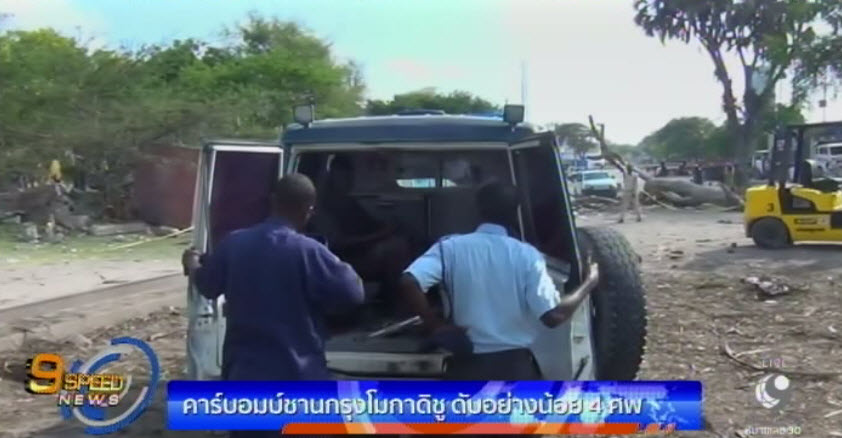 โซมาเลีย 11 ธ.ค. – เกิดเหตุคาร์บอมบ์บริเวณทางเข้าสู่ท่าเรือที่ใหญ่ที่สุดของกรุงโมกาดิชู เมืองหลวงของโซมาเลีย แรงระเบิดทำให้มีผู้เสียชีวิตอย่างน้อย 4 คน บาดเจ็บอีก 7 คน อีกทั้งยังทำให้ร้านค้าบริเวณใกล้เคียงได้รับความเสียหาย ด้านพันตรีอับดุลลาห์ อาลี ตำรวจผู้เข้าระงับเหตุ กล่าวว่า รถยนต์คันที่เกิดเหตุบรรทุกระเบิดเป็นจำนวนมาก คาดว่าเป็นระเบิดฆ่าตัวตาย และจำนวนผู้เสียชีวิตอาจเพิ่มขึ้นเพราะมีผู้สูญหายหลายคน ขณะที่มีรายงานว่า หลังเกิดระเบิดมีผู้ได้ยินเสียงปืน ยิงตอบโต้กันระยะหนึ่ง โดยจนถึงขณะนี้ ยังไม่มีกลุ่มใดออกมาอ้างความรับผิดชอบ. -สำนักข่าวไทย