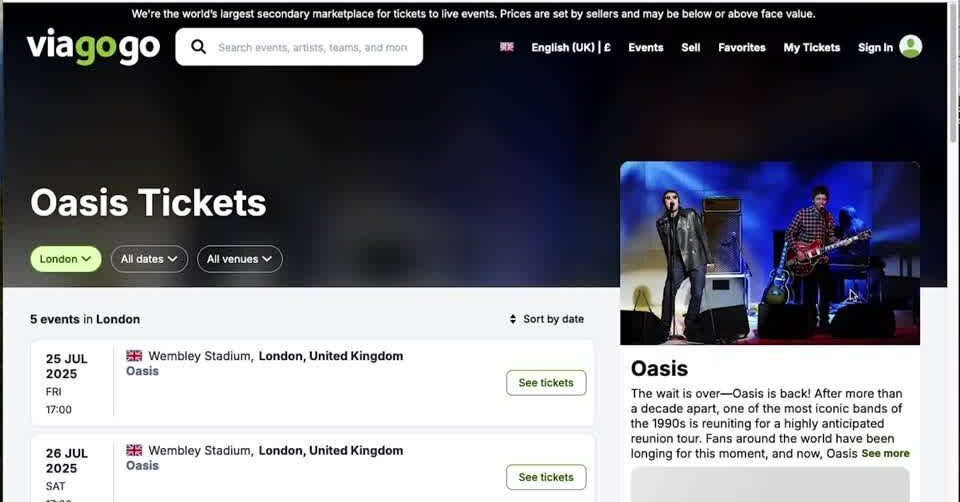 “โอเอซิส” กำหนดในเบื้องต้นที่จะแสดง 14 คอนเสิร์ต ที่จะเริ่มเปิดตัวที่เมืองคาร์ดิฟฟ์ ในเวลส์ ในเดือนกรกฎาคม 2025 ตามมาด้วยคอนเสิร์ตที่เมืองแมนเชสเตอร์ ซึ่งเป็นจุดเริ่มต้นของการก่อตั้งวงในปี 1991 และหลังจากนั้นก็จะไปที่กรุงลอนดอน เมืองเอดินเบอระ ในสก็อตแลนด์ และกรุงดับลิน ในไอร์แลนด์ เมื่อสัปดดาห์ที่แล้ว “โอเอซิส” เพิ่มรอบการแสดงอีก 3 รอบ ในอังกฤษอีก 3 รอบ ในเมืองแมนเชสเตอร์ กรุงลอนดอน และเมืองเอดินเบอระ และล่าสุด “โอเอซิส” แจ้งผ่านแอปพลิเคฃั่นเอ็กซ์ว่า จะเพิ่มคอนเสิร์ตอีก 2 รอบ ในกรุงลอนดอน