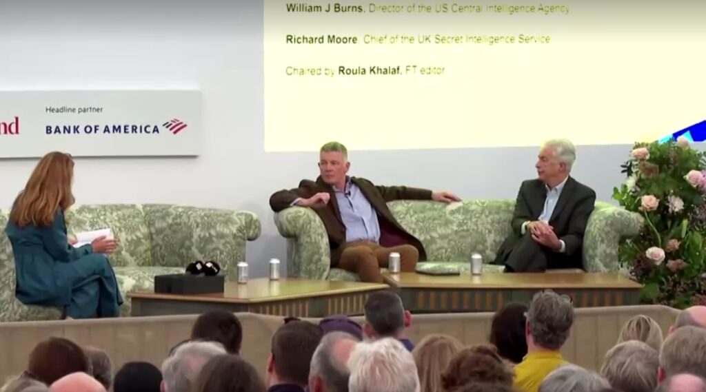 นายเบิร์นส์ขึ้นเวทีดังกล่าวร่วมกับนายริชาร์ด มัวร์ หัวหน้าหน่วยข่าวกรองต่างประเทศ หรือเอ็มไอซิกซ์ (MI6) ของอังกฤษ นับเป็นครั้งแรกที่บุคคลทั้ง 2 ปรากฏตัวต่อสาธารณะร่วมกัน ทั้งคู่ได้ร่วมกันเขียนบทความแสดงความเห็นลงในไฟแนนเชียลไทมส์ฉบับวันเสาร์ก่อนขึ้นเวทีในวันเดียวกัน เนื้อหาบทความตอกย้ำว่า การเดินหน้าสนับสนุนยูเครนต่อไปเป็นเรื่องสำคัญมากที่สุดในเวลานี้ นายเบิร์นส์กล่าวถึงเรื่องที่ยูเครนรุกเข้าไปในแคว้นคุสค์ของรัสเซียและยึดดินแดนได้บางส่วนว่า เป็นความสำเร็จครั้งใหญ่ของยูเครน แต่ก็ยังไม่เห็นสิ่งบ่งชี้ว่า ประธานาธิบดีวลาดิเมียร์ ปูตินของรัสเซียเริ่มสูญเสียอำนาจในการปกครอง.-820(814).-สำนักข่าวไทย