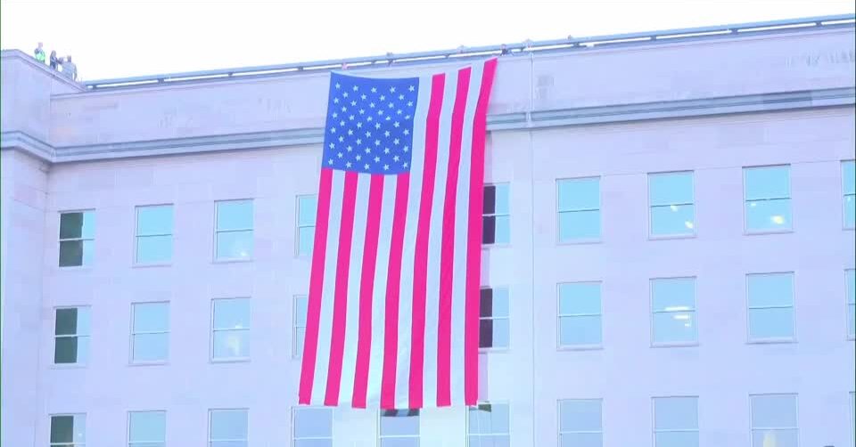 ธงชาติสหรัฐถูกนำมาคลุมด้านหน้าอาคารสำนักงานของเพนตากอนและเจ้าหน้าที่ประกาศรายชื่อผู้เสียชีวิตจากเหตุการณ์เครื่องบินโดยสารที่ถูกสลัดอากาศจี้ พุ่งชนอาคารกระทรวงกลาโหม ในวันนี้เมื่อ 23 ปีก่อน เป็นเหตุให้มีผู้เสียชีวิตในอาคาร 125 ราย พร้อมกับคนบนเครื่องบิน 64 ราย ขณะที่เที่ยวบินอีก 3 ลำ ที่ถูกสลัดอากาศสมาชิกเครือข่ายก่อการร้ายอัลกออิดะห์ยึดในเวลาเดียวกัน พุ่งชนตึกแฝดอาคารเวิลด์เทรดเซ็นเตอร์และตกในรัฐเพนซิลเวเนีย ระหว่างพยายามขับพุ่งชนทำเนียบขาว มีผู้เสียชีวิตจากเหตุวินาศกรรมครั้งนี้รวม 2,977 ราย.-815.-สำนักข่าวไทย
