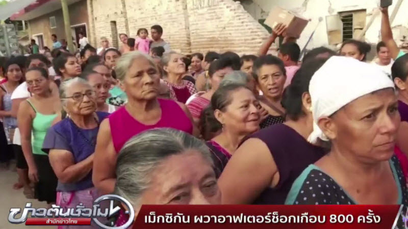 เม็กซิโก 11 ก.ย. – ผู้รอดชีวิตจากเหตุแผ่นดินไหวรุนแรงทางตอนใต้ของเม็กซิโก เมื่อสัปดาห์ก่อน จนมีผู้เสียชีวิตอย่างน้อย 90 ราย ออกมาประกอบพิธีทางศาสนากลางแจ้งร่วมกัน โดยผู้คนยังคงหวาดวิตก เนื่องจากเกิดแรงสั่นสะเทือนหลังแผ่นดินไหว (อาฟเตอร์ช็อก) ต่อเนื่องเกือบ 800 ครั้งแล้ว ขณะที่อาคารบ้านเรือนจำนวนมากได้รับความเสียหาย ผู้คนอีกหลายแสนคนไม่มีน้ำประปาใช้ ทางการต้องแจกจ่ายอาหารและน้ำดื่มให้กับผู้ประสบภัย. – สำนักข่าวไทย
