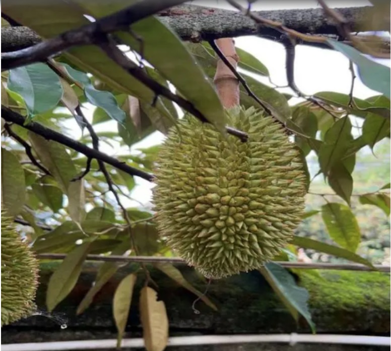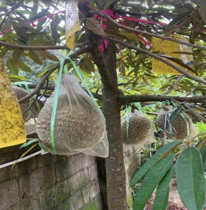“ในปี 2019 ผมซื้อต้นกล้าทุเรียนจากโรงเพาะเลี้ยงในท้องถิ่นโดยตั้งใจว่าจะลองปลูกทุเรียนพันธุ์นี้ดู ระหว่างการปลูกก็ใส่ปุ๋ย รดน้ำ และตัดแต่งกิ่งตามปกติ หลังจากเติบโตได้ 5 ปี ทุเรียนต้นนี้ก็ออกดอกเป็นครั้งแรกในเดือนมกราคม และกลายเป็นผลในช่วงต่อมา ผลทุเรียนที่สุกแล้วมีน้ำหนักประมาณ 4 กิโลกรัม” จื่อ ต้า ชาวบ้านจากหมู่บ้านกานเจี้ย เมืองจิ่งหง แคว้นสิบสองปันนาเล่า