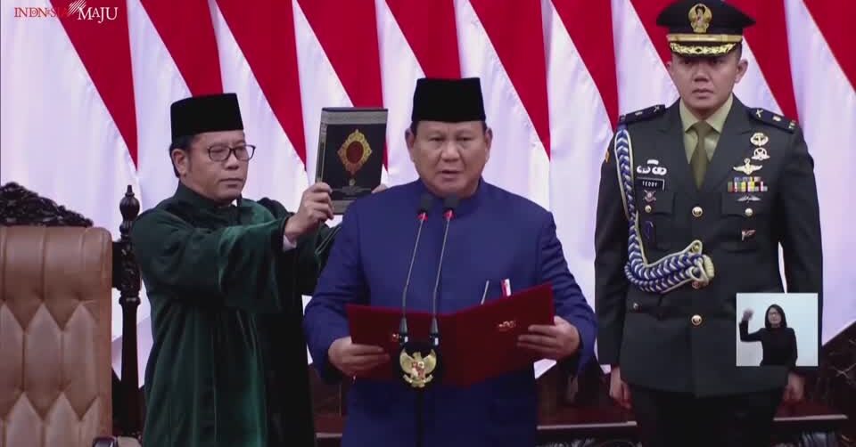 นายปราโบโว สวมเครื่องแต่งกายประจำชาติ เข้าพิธีสาบานตนในช่วงเช้าวันนี้ในพิธีที่จัดขึ้นที่อาคารรัฐสภา ทำให้เขากลายเป็นประธานาธิบดีคนที่ 8 ของอินโดนีเซียอย่างเป็นทางการ นายปราโบโว ซึ่งเคยลงสมัครชิงตำแหน่งประธานาธิบดีมาแล้ว 2 ครั้ง แต่ไม่ประสบความสำเร็จ มีกำหนดจะกล่าวปราศรัยต่อสมาชิกรัฐสภา ในห้องประชุมสมาฃิกสภาสูงในอาคารรัฐสภาและจากนั้นจะเดินทางต่อไปยังทำเนียบประธานาธิบดี ในพิธีสาบานตนในวันนี้ ผู้ที่เข้าร่วมในพิธีด้วย ได้แก่ จิบราน รากาบูมิง รากา วัย 37 ปี บุตรชายคนโตของนายโจโก วิโดโด ที่เพิ่งหมดวาระดำรงตำแหน่งประธานาธิบดีในวันนี้ นายจิบราน เป็นผู้สมัครคู่หูของนายปราโบโวในตำแหน่งรองประธานาธิบดี