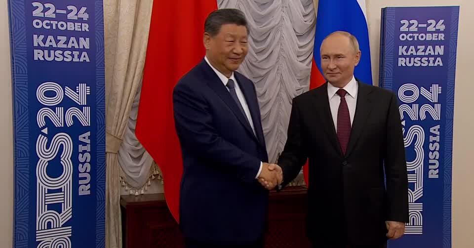 คาซาน 23 ต.ค. – ประธานาธิบดีวลาดิเมียร์ ปูติน ของรัสเซีย ทักทายประธานาธิบดีสี จิ้นผิง ของจีน ในวันอังคารตามเวลาท้องถิ่นในรัสเซีย ในพิธีเปิดการประชุมสุดยอดผู้นำกลุ่มประเทศบริกส์ ที่เมืองคาซาน ของรัสเซีย โดยเขากล่าวว่า ความร่วมมือที่ขยายตัวเพิ่มขึ้นระหว่างจีนกับรัสเซียเป็นปัจจัยที่ทำให้โลกมีเสถียรภาพ