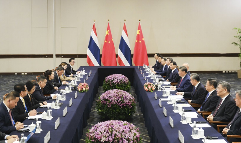สี จิ้นผิงกล่าวว่าเนื่องในปี 2025 ตรงกับวาระครบรอบ 50 ปี ความสัมพันธ์ทางการทูตจีน-ไทย รวมถึงปีทองแห่งมิตรภาพความสัมพันธ์ทางการทูตระหว่างสองประเทศ จีนพร้อมทำงานร่วมกับไทยเพื่อสานต่อมิตรภาพดั้งเดิม เสริมสร้างการจัดวางยุทธศาสตร์การพัฒนา ส่งเสริมการแลกเปลี่ยนประสบการณ์บริหารปกครอง เดินหน้าความร่วมมืออันเป็นประโยชน์ซึ่งกันและกันในด้านต่างๆ สนับสนุนการสร้างความทันสมัยของทั้งสองประเทศ และผลักดันการสร้างประชาคมจีน-ไทยที่มีอนาคตร่วมกัน