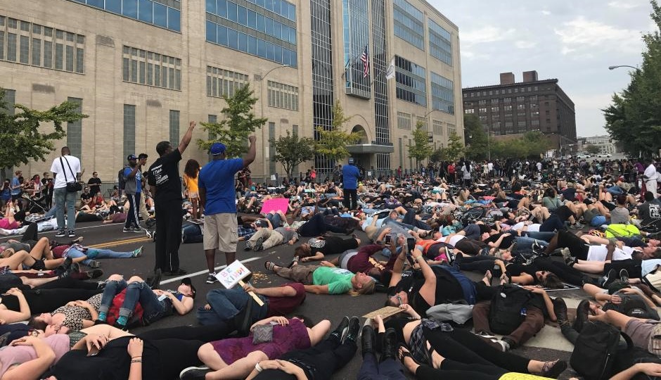 บรรดากลุ่มผู้ชุมนุมขว้างปาหินเข้าใส่เจ้าหน้าที่ตำรวจ รวมถึงก่อเหตุทำลายสิ่งของและกระจกร้านค้าเพื่อแสดงความไม่พอใจ หลังศาลในรัฐมิสซูรีตัดสินให้นายเจสัน สตอกลีย์ อดีตตำรวจผิวขาวพ้นผิดในข้อหาฆ่าคนตายโดยไตร่ตรองไว้ก่อนกรณีที่ยิงนายแอนโธนี ลามาร์ สมิธ ชายผิวดำเสียชีวิตเมื่อวันที่ 20 ธันวาคม 2554 เนื่องจากหลักฐานที่มีทั้งปืนและภาพวิดีโอไม่เพียงพอที่จะเอาผิด