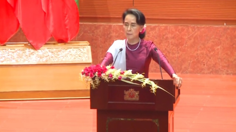 แม้นางซู จีเคยกล่าวประณามการละเมิดสิทธิในรัฐยะไข่และผู้ก่อเหตุต้องถูกลงโทษ ภายหลังเหตุรุนแรงปะทุขึ้นอีกครั้งเมื่อกลุ่มติดอาวุธชาวโรฮิงญาโจมตีด่านความมั่นคง ทำให้กองทัพใช้ปฏิบัติการปราบปรามตอบโต้ ส่งผลให้ชาวมุสลิมโรฮิงญา 421,000 คนต้องอพยพหนีไปบังกลาเทศ อย่างไรก็ตาม ในแถลงการณ์ครั้งแรกที่นางซู จีกล่าวถึงเรื่องนี้ เธอไม่ได้กล่าวพาดพิงตามข้อกล่าวหาของสหประชาชาติที่ว่ากองกำลังรักษาความมั่นคงกวาดล้างชนกลุ่มน้อย และมีเสียงตำหนิจากหลายประเทศ นางซู จีให้สัมภาษณ์สถานีวิทยุเอเชียเสรีว่า เธอไม่เคยเปลี่ยนจุดยืน ภายหลังจากเคลื่อนไหวเพื่อเรียกร้องประชาธิปไตยมานานหลายปี โดยกล่าวว่าเป้าหมายของเธอคือความสามัคคีปรองดองภายในชาติเป็นพื้นฐานสำคัญ และอาจมีบ้างที่ไม่เห็นด้วยกับกองทัพ ขณะที่ยืนยันว่า จะยังคงผลักดันในสภาเพื่อแก้ไขรัฐธรรมนูญซึ่งร่างขึ้นตั้งแต่สมัยรัฐบาลทหาร อย่างไรก็ตามในการคำกล่าวของนางซู จีเมื่อวานนี้ เธอไม่ได้กล่าวหากองทัพที่ใช้ปฏิบัติการกวาดล้างชนกลุ่มน้อย .- สำนักข่าวไทย