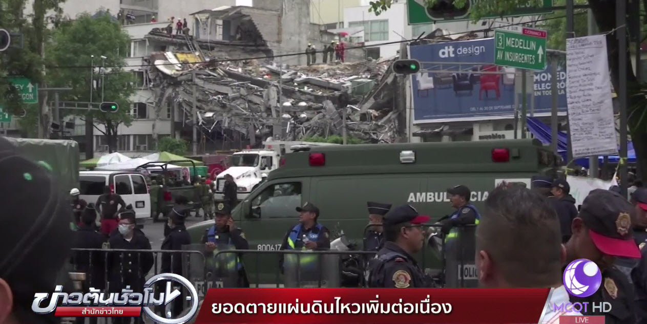 เม็กซิโก 22 ก.ย.-ยอดผู้เสียชีวิตจากเหตุการณ์แผ่นดินไหว 7.1 ในเม็กซิโกยังคงเพิ่มขึ้นอย่างต่อเนื่อง ล่าสุดทางการได้ปรับตัวเลขเพิ่มเป็น 273 คนแล้ว ในจำนวนนี้เป็นผู้เสียชีวิตในกรุงเม็กซิโกซิตีถึง 137 คน มีผู้ได้รับบาดเจ็บอีกกว่า 2,000 คน และมีผู้ที่ได้รับการช่วยชีวิตออกมาจากกองซากอาคารในเขตเมืองหลวงกว่า 50 คน ขณะที่ชาวกรุงเม็กซิโกซิตียังคงอยู่ในอาการช็อก แม้ว่าแผ่นดินไหวจะผ่านไปแล้ว 2 วัน ผู้คนส่วนใหญ่ยอมรับว่าจะต้องใช้เวลาฟื้นฟูความเสียหายอีกนาน แต่การเยียวยาด้านจิตใจที่ได้รับผลกระทบนจะต้องใช้เวลานานยิ่งกว่า.-สำนักข่าวไทย
