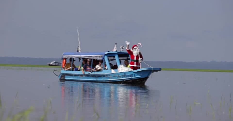 บราซิเลีย 21 ธ.ค. – การทำหน้าที่ของซานตาคลอสในบราซิลต้องเจองานหนักทั้งลงเรือและบุกป่าแอมะซอน ในขณะที่สหรัฐมีซานตาคลอสดำน้ำลงไปสร้างบรรยากาศแห่งความสุขใต้ทะเลลึก