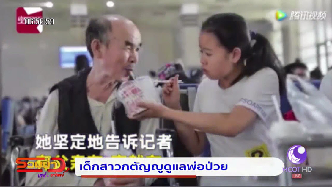 จีน 23 ก.ย.-สื่อมวลชนจีนนำเสนอเรื่องราวของเด็กสาวกตัญญูสอบเข้ามหาวิทยาลัยเรียนปี 1 ได้ แต่ต้องดูแลพ่อที่ป่วยจากอาการทางสมอง มหาวิทยาลัยจึงอนุญาตพิเศษให้พาพ่อมาพักหอพักมหาวิทยาลัยได้ด้วยฟรี