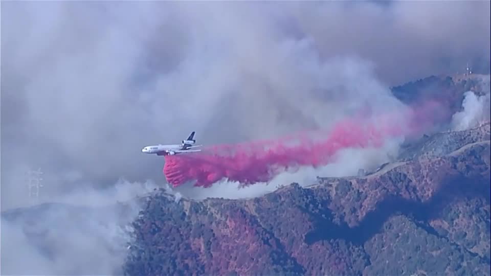 ภาพที่เห็นบ่อยครั้งในช่วงที่ผ่านมากับปฏิบัติการดับไฟป่าทางอากาศของเจ้าหน้าที่สำนักงานดับเพลิงลอสแอนเจลิส ที่ใช้เครื่องบินโปรยสารสีชมพูที่เห็นนี้ลงจากเครื่องบินเพื่อช่วยดับหรือควบคุมไฟป่าจากที่สูง สารสีชมพูที่ถูกโปรยลงมาจะปกคลุมทั่วพื้นที่ ทั้งแถบเทือกเขาและท้องถนนจนกลายเป็นสีชมพูไปทั้งเมือง