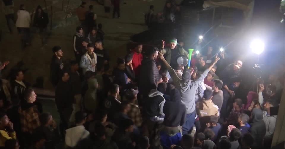 ทันทีที่มีการยืนยันว่า ได้ข้อตกลงหยุดยิงแล้ว ชาวปาเลสไตน์ในในฉนวนกาซา เช่นที่เมืองข่านยูนิส พากันฉลองด้วยความยินดีกันกลางดึก ด้วยการเต้นรำและโห่ร้องตามท้องถนน ท่ามกลางซากปรักหักพังและความเสียหายจากสงคราม