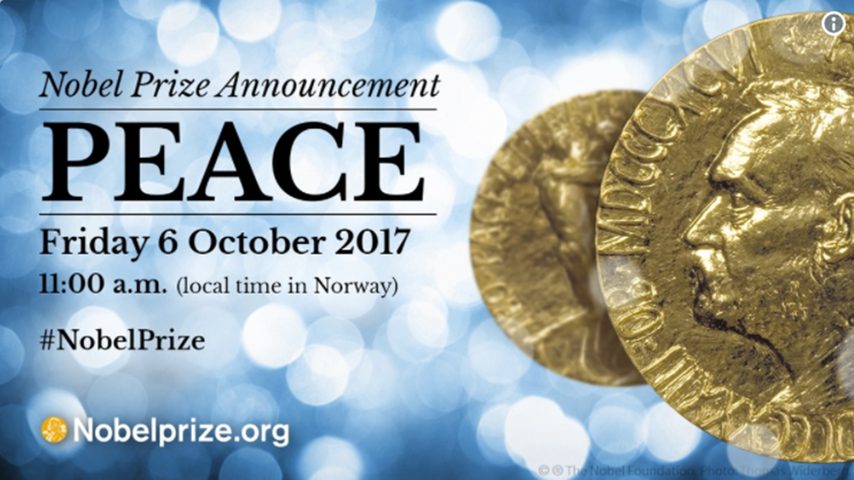สาขาที่ทั่วโลกจับตามากที่สุดคือสาขาสันติภาพ เป็นสาขาเดียวที่ประกาศที่กรุงออสโลของนอร์เวย์ ขณะที่สาขาอื่น ๆ ประกาศที่กรุงสตอกโฮล์มของสวีเดน คณะกรรมการรางวัลโนเบลแจ้งผ่านทวิตเตอร์ว่า ปีนี้มีผู้เข้าชิงสาขาสันติภาพทั้งหมด 318 ราย แยกเป็นบุคคล 215 ราย และองค์กร 103 ราย ผู้ชนะในแต่ละสาขาจะได้เงินรางวัล 9 ล้านโครนา (ราว 36.78 ล้านบาท) ในวันที่ 10 ธันวาคม