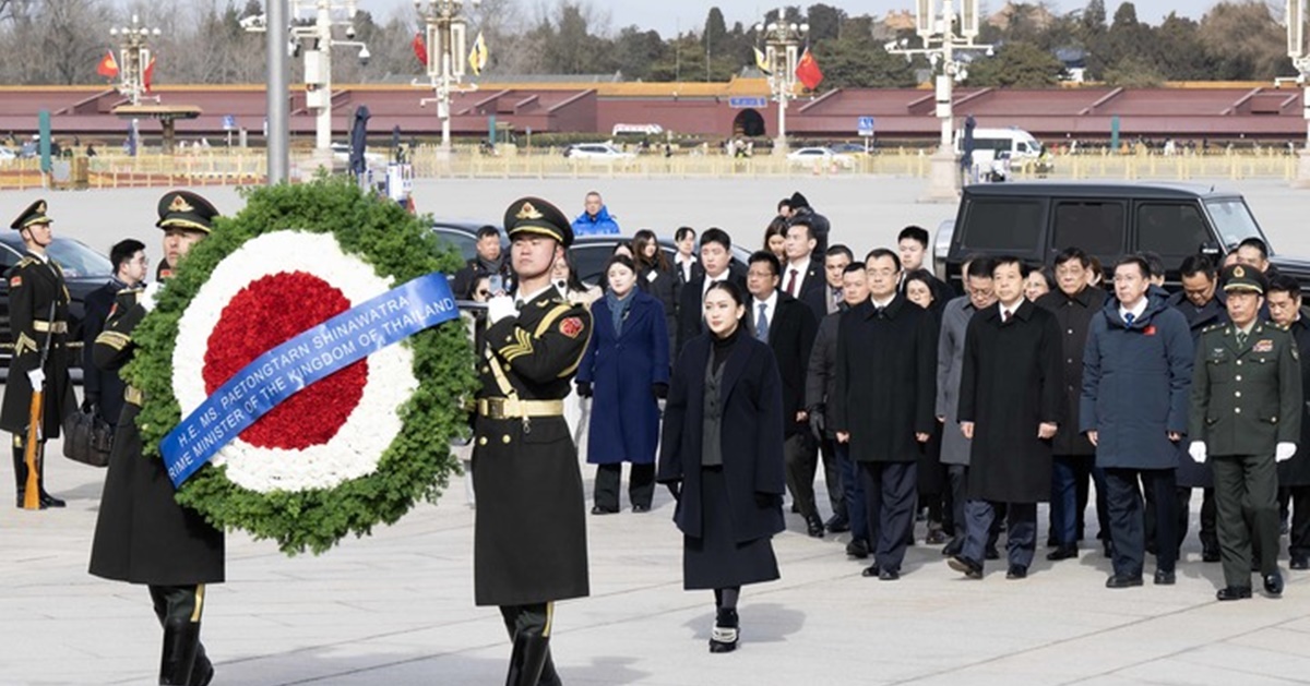 ปักกิ่ง 6 ก.พ. – สื่อทางการจีนเผยแพร่ภาพ น.ส.แพทองธาร ชินวัตร นายกรัฐมนตรีไทย เข้าร่วมพิธีวางพวงมาลา ณ อนุสาวรีย์วีรชน บริเวณจัตุรัสเทียนอันเหมิน ใจกลางกรุงปักกิ่งของจีน ในวันนี้ ระหว่างการเยือนจีนอย่างเป็นทางการ