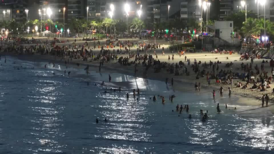 ขณะที่ผู้คนและนักท่องเที่ยวจำนวนมาก ในนครรีโอเดจาเนโร ของบราซิล พากันออกมาพักผ่อนและลงเล่นน้ำทะเลคลายร้อนริมชายหาดในตอนกลางคืน หลังต้องเผชิญกับอากาศร้อนจัด สภาพอากาศร้อนจัดที่แผ่ไปทั่วเมือง ส่งผลให้บริเวณชายหาดหลายแห่งของนครรีโอเดจาเนโร อาทิ หาดอาร์ปัวดอร์ และหาดอีปาเนมา มีแสงส่องสว่างไปทั้งคืน ซึ่งเป็นวิธีใหม่ในการเพลิดเพลินกับฤดูร้อนของชาวบราซิล จากการพยากรณ์อาการ คาดว่าในวันพฤหัสบดีตามเวลาท้องถิ่น อุณหภูมิจะสูงถึง 39 องศาเซลเซียส ก่อนจะลดลงเล็กน้อยเป็นราว 38 องศาเซลเซียสในวันนี้ และอากาศจะร้อนจัดอย่างต่อเนื่อง ทำให้คาดว่า กระแสการออกมาพักผ่อนริมชายหาดในตอนกลางคืนของผู้คนที่นี่จะยังคงดำเนินต่อไป.-815.-สำนักข่าวไทย