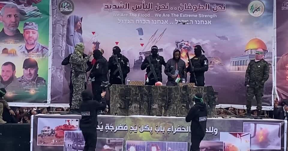 ตัวประกันชาย 2 คน วัย 40 และ 39 ปี ถูกส่งให้อิสราเอลผ่านทางสภากาชาดที่เมืองราฟาห์ ทางใต้ของฉนวนกาซา หลังจากที่ทั้งสองถูกนำตัวขึ้นเวทีโดยกลุ่มฮามาสที่ยืนเคียงข้างโดยมีอาวุธครบมือ ตัวประกันขาวอิสรเอลอีก 4 คน มีกำหนดจะส่งมอบที่บริแวณภาคกลางของฉนวนกาซาในวันนี้