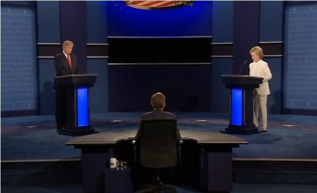 เนื้อหาการโต้วาทีครั้งนี้เน้นเรื่องนโยบายมากกว่าการโจมตีเรื่องส่วนตัวเหมือนสองครั้งที่ผ่านมา ผู้สมัครทั้งสองคนตอบคำถามในหลายหัวข้อทั้งเรื่องการแต่งตั้งผู้พิพากษาศาลฎีกา สิทธิในการทำแท้ง ผู้ลอบเข้าเมือง ความสัมพันธ์กับรัสเซียและข้อกล่าวหาเรื่องรัสเซียเจาะระบบอีเมลทางการเมืองของสหรัฐ การกระตุ้นเศรษฐกิจ อย่างไรก็ดี ทรัมป์ซึ่งสงบเสงี่ยมในช่วงครึ่งชั่วโมงแรก พูดเมื่อผู้ดำเนินรายการถาม เริ่มพูดแทรกคลินตันเป็นระยะ ๆ เมื่อโต้กันเรื่องรัสเซียและอาวุธนิวเคลียร์ นอกจากนี้ยังได้กล่าวหาคณะหาเสียงของคลินตันว่าอยู่เบื้องหลังการนำสตรีหลายคนดาหน้าออกมาโกหกว่าเขาลวนลามทั้งที่เขาไม่รู้จักสตรีเหล่านี้ รวมทั้งจ้างคนไปก่อกวนการหาเสียงของเขาที่นครชิคาโกด้วย ทรัมป์กล่าวหามูลนิธิคลินตันว่าเป็นองค์กรอาชญากรรม รับเงินจากประเทศที่กดขี่สิทธิมนุษยชน ไม่เหมือนมูลนิธิของเขาที่ทำประโยชน์เพื่อสังคม หลังจากนั้นทั้งคู่ได้ตอบคำถามเรื่องจุดขัดแย้งในต่างประเทศทั้งอิรัก ซีเรีย ก่อนย้อนกลับมาที่เรื่องเศรษฐกิจและปิดด้วยเรื่องสวัสดิการสังคม.- สำนักข่าวไทย