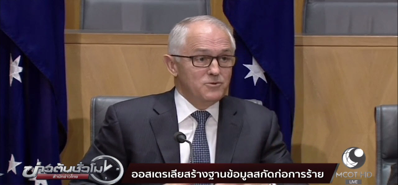 นายกรัฐมนตรีมัลคอล์ม เทิร์นบูลล์ ของออสเตรเลีย เผยตำรวจจะสร้างฐานข้อมูลภาพถ่าย เพื่อใช้ในการระบุตัวผู้ต้องสงสัยก่อการร้ายที่ปรากฏอยู่ในภาพจากกล้องวงจรปิดตามสถานที่ต่างๆ นอกจากนี้ รัฐบาลกลางและรัฐบาลท้องถิ่นยังเห็นชอบที่จะเพิ่มรูปถ่ายบนใบขับขี่ลงในฐานข้อมูลของประเทศอีกด้วย เพื่อย่นระยะเวลาในการระบุตัวผู้ต้องสงสัย และป้องกันการก่อเหตุจากกลุ่มหัวรุนแรง.-สำนักข่าวไทย