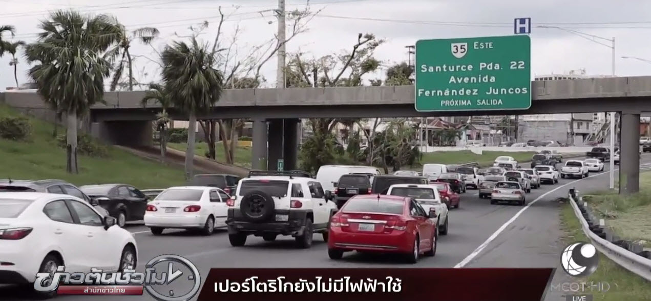เปอร์โตริโก 6 ต.ค.-ตำรวจจราจรในกรุงซานฮวนของเปอร์โตริโกต้องทำงานกันอย่างหนัก เพื่ออำนวยความสะดวกให้ผู้ใช้รถใช้ถนน เนื่องจากสัญญาณไฟจราจรยังไม่สามารถใช้การได้ หลังเสียหายจากเฮอริเคนมาเรียที่พัดถล่มเมื่อวันที่ 20 กันยายนที่ผ่านมา จนทำให้มีผู้เสียชีวิตอย่างน้อย 34 คน และเกิดความเสียหายอย่างหนัก รวมทั้งไฟฟ้าดับเกือบทั้งเกาะ ทางการคาดว่ากว่าจะแก้ไขให้มีไฟฟ้าใช้งานได้ทั่วเกาะจะต้องใช้เวลาถึงเดือนมีนาคมปีหน้า ขณะที่ทางการยังต้องจัดส่งอาหารและน้ำดื่มไปช่วยเหลือประชาชนในหลายพื้นที่.-สำนักข่าวไทย